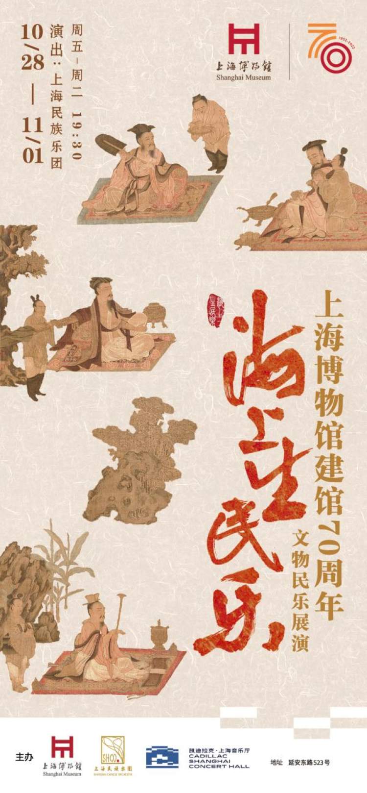 为推动博物馆跨界出圈,上海博物馆携手上海民族乐团于2022年10月28日至11月1日在上海音乐厅举办“海上生民乐——上海博物馆建馆70周年文物民乐展演”。12月17日晚,还将举办“博物馆的力量:上博之光”博物馆奇妙夜活动,结合上博元宇宙AR秀,充分展示上海博物馆70年的发展历程与成就,并展望未来。