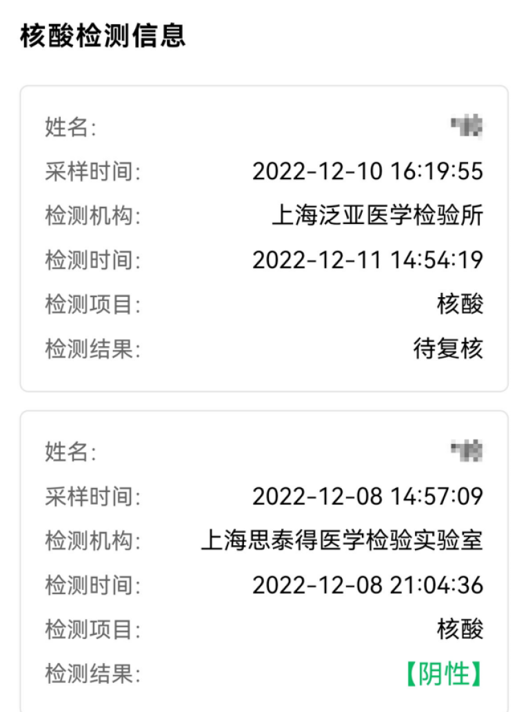 当天从核酸检测点回来之后,Q先生并没有马上去关注核酸报告,因为以往做完核酸基本上第二天早上都能出结果。但这次因为收到单位通知周一(12月12日)要开大会需要核酸,他才在上周日(12月11日)下午去看核酸结果。结果一看吓一跳,因为显示的是24小时核酸待复核(见上图),这是他以前从来没有遇到过的情况。
