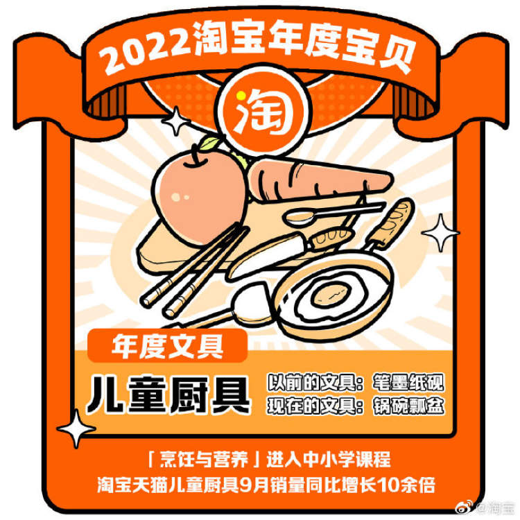 自教育部发布劳动课程标准,将“烹饪与营养”等将纳入中小学课程内容后,淘宝天猫儿童厨具九月的销量就同比增长10余倍。
