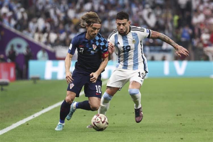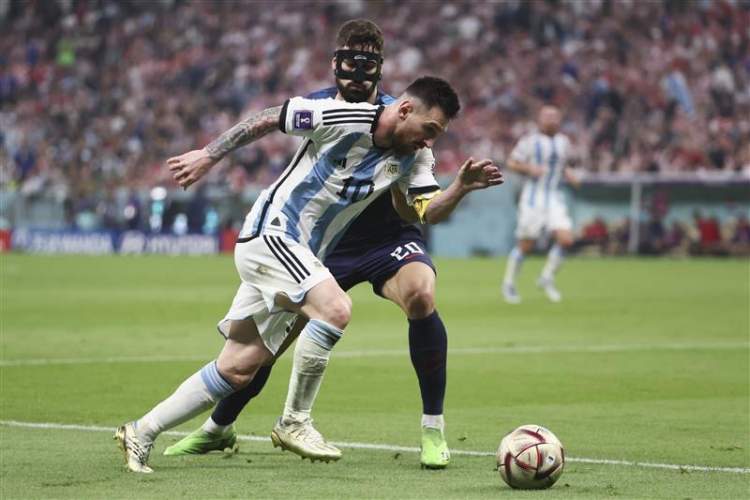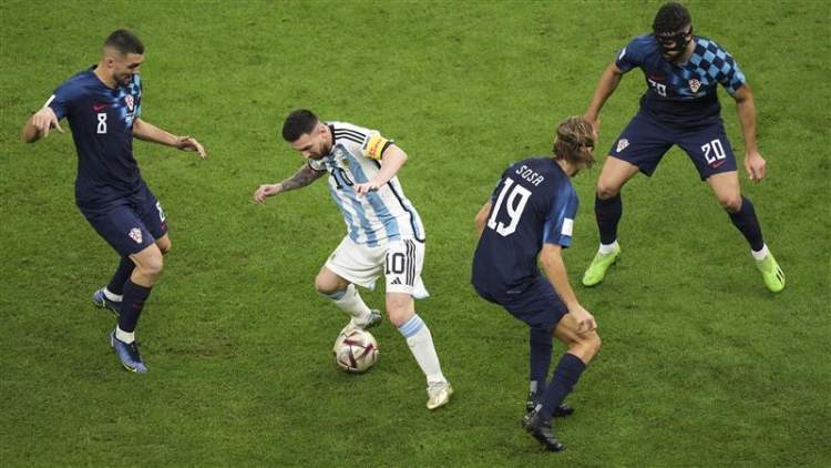 斯卡洛尼变阵442,用四名中场球员去夹抢克罗地亚队的三名中场球员,靠着人数优势遏制对手的进攻组织和向前推进。上半场两球领先后,阿根廷队下半场变阵五后卫,以此来应对克罗地亚队使用双中锋战术的高球冲吊。