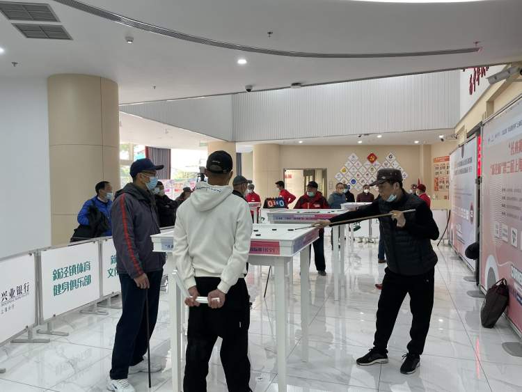 由上海市社区体育协会、上海市长宁区体育局主办、上海市长宁区新泾镇人民政府共同主办的2022年上海社区健康运动会康乐球联盟赛“新泾杯“第三届上海市康乐球锦标赛12月13日在长宁区新泾镇公共服务综合楼一楼大厅开杆。