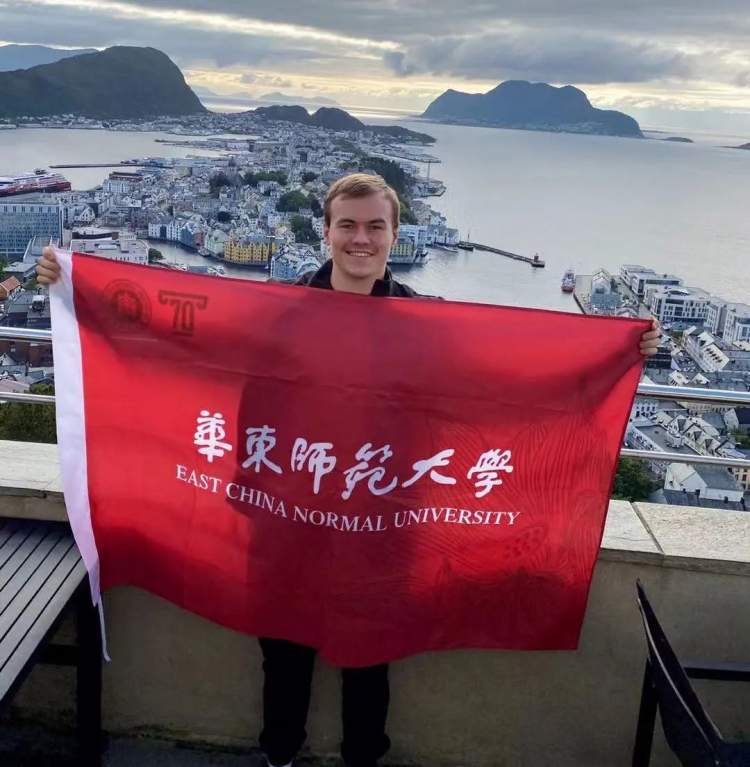 2021年华东师大迎来了建校70周年校庆,为了表达对学校的思念,他人在挪威,挥舞着华东师大的旗帜,为师大送来来自北欧的祝福。