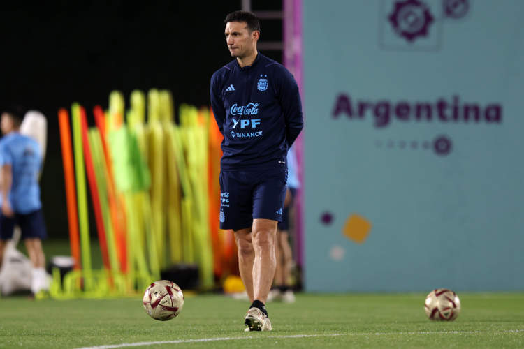 阿根廷队主教练斯卡洛尼在训练中表情凝重。面对即将到来的决战,斯卡洛尼难言轻松。