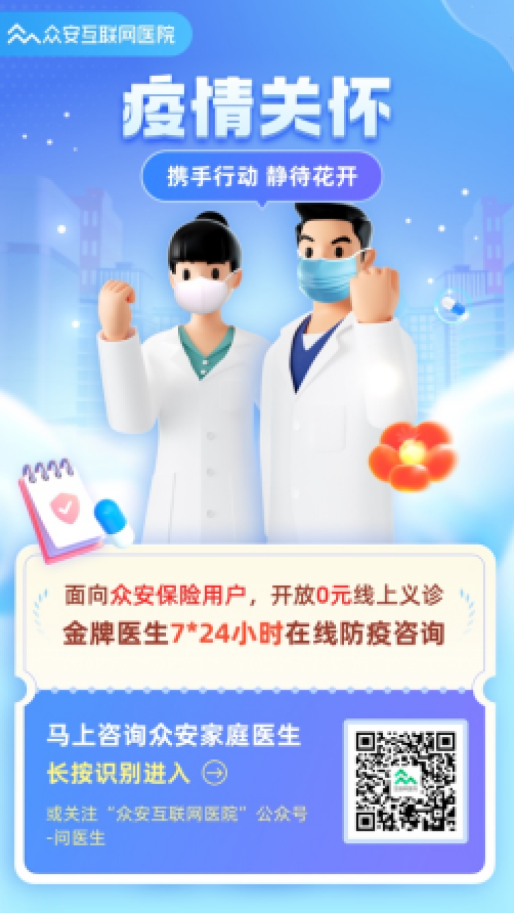为响应国家政策,众安互联网医院在提供健康咨询、就医指导等便捷服务的同时,还将整合平台能力,提供用药指导、居家防控等信息和科普,并持续推出防疫相关产品和服务,助力全民科学防疫。