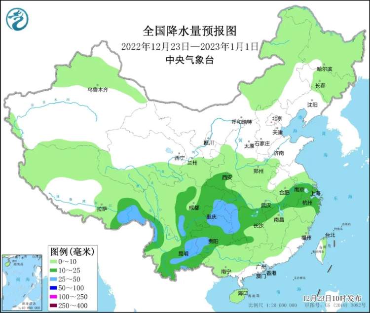 中央气象台预计,未来10天,也就是12月23日-2023年1月1日,全国降水主要集中在四川、湖北、湖南和云贵等地,其余大部分地区降水偏少。