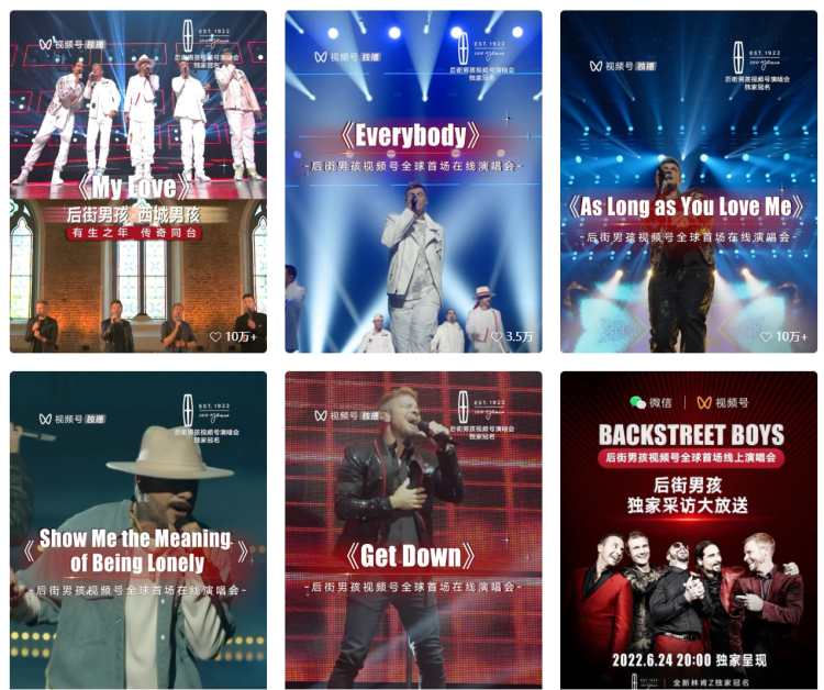 当时间来到6月,后街男孩全球首场线上演唱会在微信视频号拉开帷幕,刚开场观看量就已超900万。演唱会歌单共计22首歌,《As Long As You Love Me》《Get Down》等经典曲目掀起了全网回忆青春的热潮,最终观看人次为4474万。