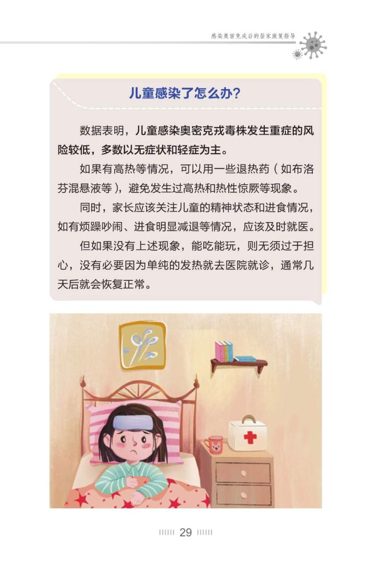 该书由“快速了解奥密克戎变异株”“如何保护自己,降低感染风险”“感染奥密克戎后的居家康复指导”“新冠疫苗接种问与答”等部分组成。鉴于目前疫情的现状,线上版主要聚焦“感染奥密克戎后的居家康复指导”。