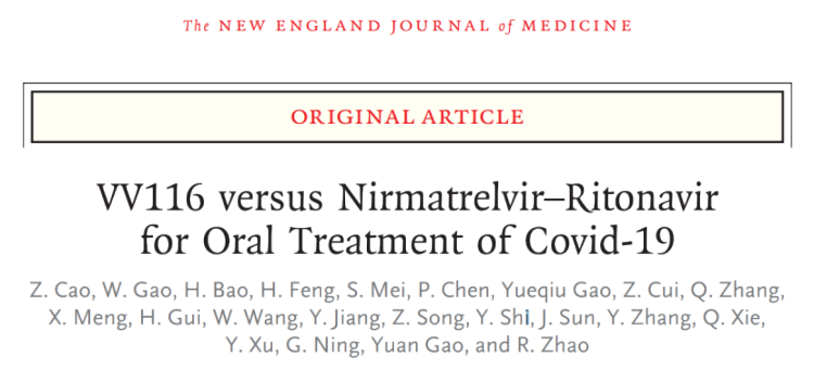 12月29日,全球权威期刊《新英格兰医学杂志》 在线发表了君实生物旗下的口服核苷类抗新型冠状病毒药物VV116对比奈玛特韦片/利托那韦片组合药物(PAXLOVID)用于伴有进展为重度包括死亡高风险因素的轻至中度新型冠状病毒感染患者早期治疗的III期临床研究成果。这是NEJM发表的首个中国自主研发的新冠创新药临床试验。