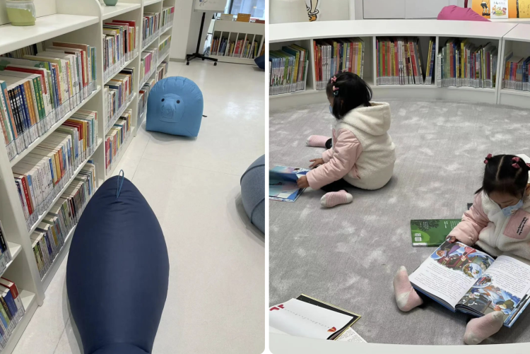提升改造后的徐家汇书院,有专门对一个少儿阅读区,书架上摆满了各种各样的图书和儿童绘本,同时,通过运用卡通动物等儿童喜闻乐见的元素进行彩绘装点,以最具童趣的方式邀请小朋友们畅游知识海洋,对书架、桌椅进行软包改造,量身定制儿童阅读空间。在右边的区域中,有不少孩子正赤脚坐在书堆里认真读书,就连这里的智能还书设备都是卡通的。值得一提的是,区域内还有一个沉浸式儿童剧场,为儿童打造互动性强的浸入式中英文儿童科普剧、故事剧及音乐剧等。