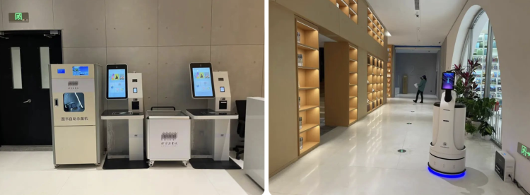 除了环境和设施更加完善,书院的一大特点是智能化。在地下一楼,有全上海公共图书馆中首家启用的智能书库,藏书达8万册,由机器人根据芯片定位来精准取书。智能书库主要面向不到馆借书的读者,通过小程序可提前预约自己想借的书籍。机器人精准取书后,放在位于B1文创空间或大门口的自助借书柜里,读者无须进馆就可取书。