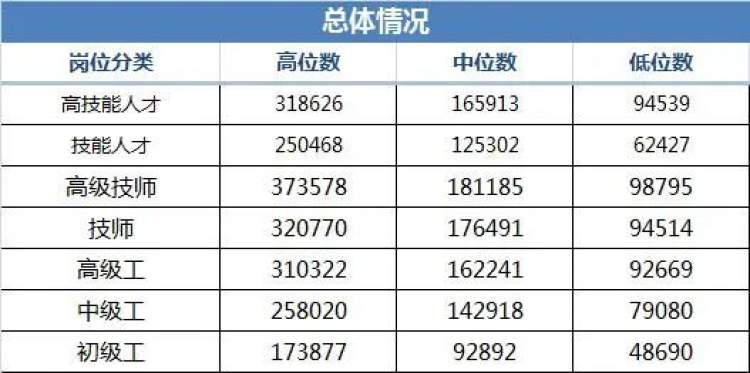 技能人才市场工资价位数据指技能劳动者在2021年取得的全部工资性收入,包括基本工资、奖金、津贴、补贴、加班工资等。
