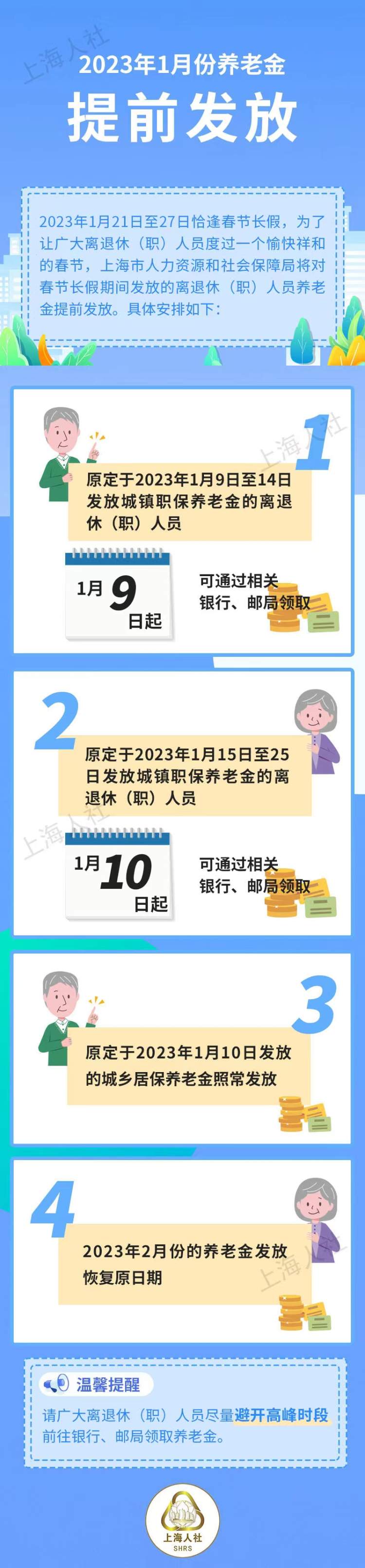 📚 原定于2023年1月10日发放的城乡居保养老金照常发放;
