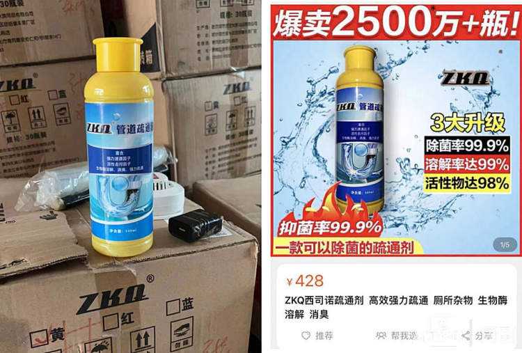 ▲每瓶售价428元至485元不等的疏通剂成本仅为4元
