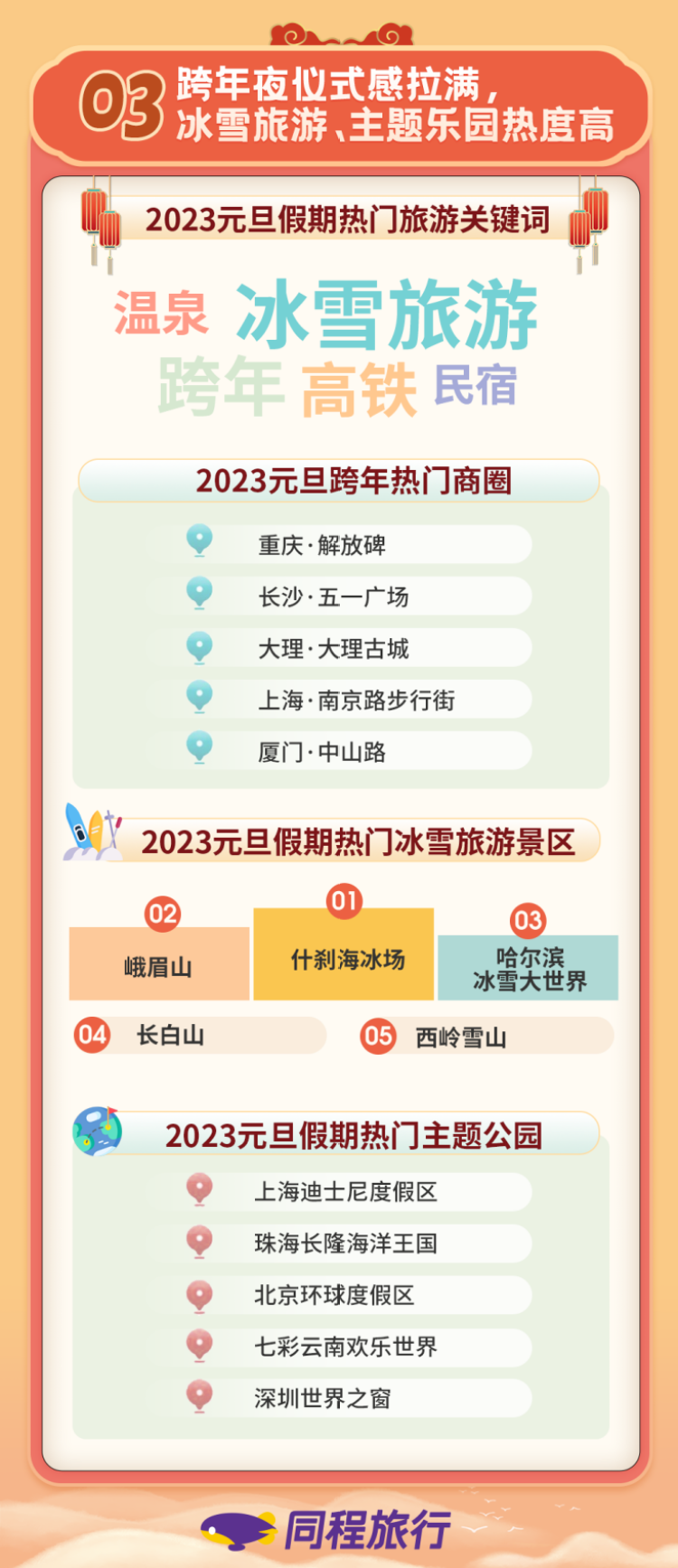 同程研究院分析认为,2023年元旦假期,部分目的地的市场恢复超过预期,显示了国内游客的出游信心的快速修复,也为2023年的旅游市场复苏奠定了良好的基础。