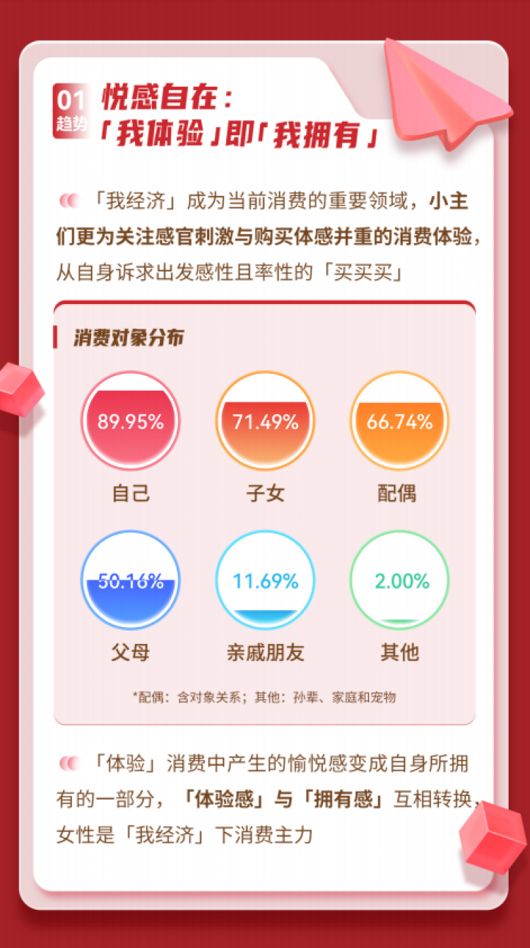 当亲历过周期波动之后,人们开始重新审视消费动机,聆听并遵循自己内心的声音。一方面,“我经济”的内涵被进一步提档扩容,《报告》发现,在消费观念方面,“这一届消费者”表现出以内心需求为尺度、身心健康兼顾效率、计划性消费、追求消费品质的“趋势线”。