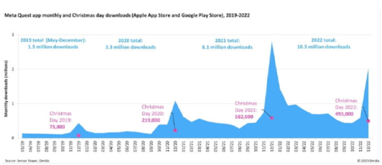 Meta Quest应用2022年下载量为1030万次,同比增长27%
