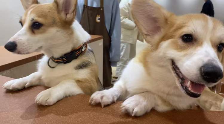 “我们的狗狗很神奇,会邀请寄养的狗狗们一起玩耍。”张女士介绍,店里的柯基都是经过训练的,很温和、愿意去“社交”。