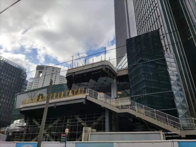 当天,记者又来到公平路东长治路路口,看到二期空中连廊已经开工建设。