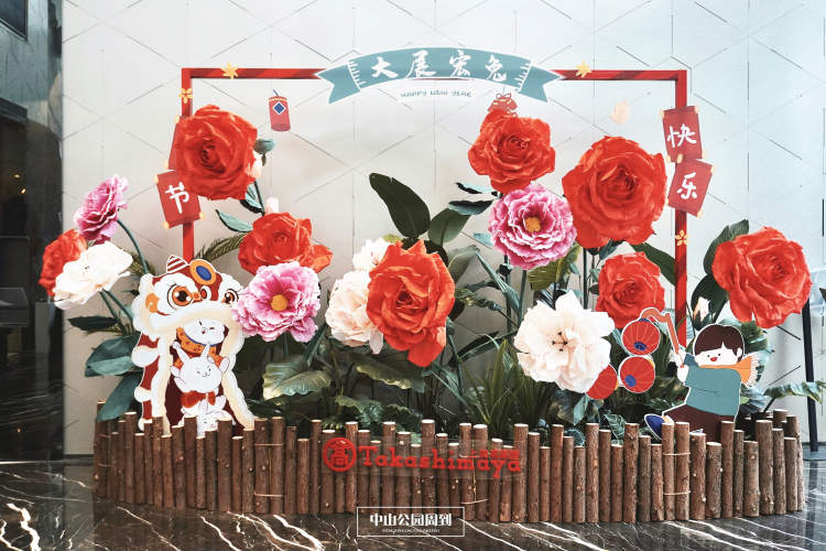如今商场的客流逐渐恢复中,但新年的氛围丝毫不减。门前红红火火的新年装置好似巨型大红灯笼,喜气洋洋欢迎着各方来客,醒目且吉祥的牡丹花装饰让这个寒冷的冬天多了几分暖意,瞬间提起了春节大采购的兴致。