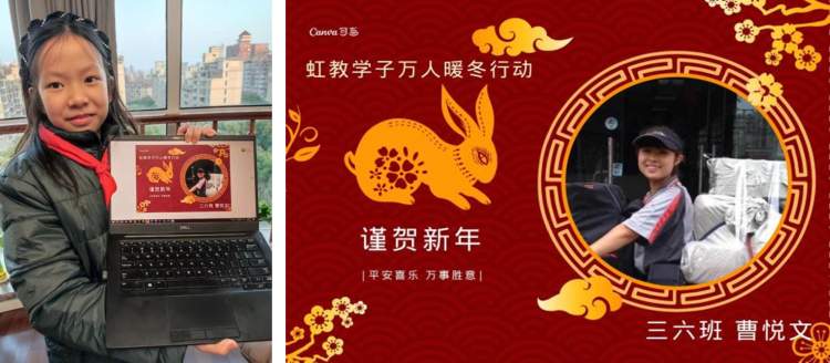 春节临近,很多外来务工人员因为各种原因留沪过年。为了让这些放弃节日返乡、留驻这座城市、仍不停奔忙劳作的护工、快递员等感受到“一份上海城市温情”,虹口区教育局用心用情、设计组织开展了一项小切口、具有特殊意义的寒假教育活动——“虹教学子万人暖冬行动”。虹口学子通过自己设计制作一张主题明信片、担当一次“爱的信使”,为他们送上一份祝福,或结合现场实际、用其他切实可行的特定方式,传递“爱的行动、暖的心意”。